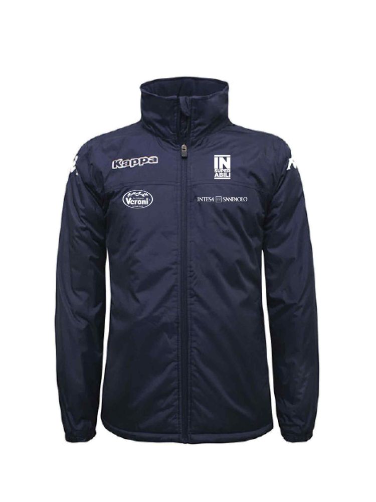 Giacca allenamento imbottita in tessuto a navetta con tecnologia WATER PROTECTION. REGULAR FIT. Fodera interna in pile, cappuccio interno collo, apertura zip davanti, inserto sul fronte, tasche senza zip e polsi elasticizzati.